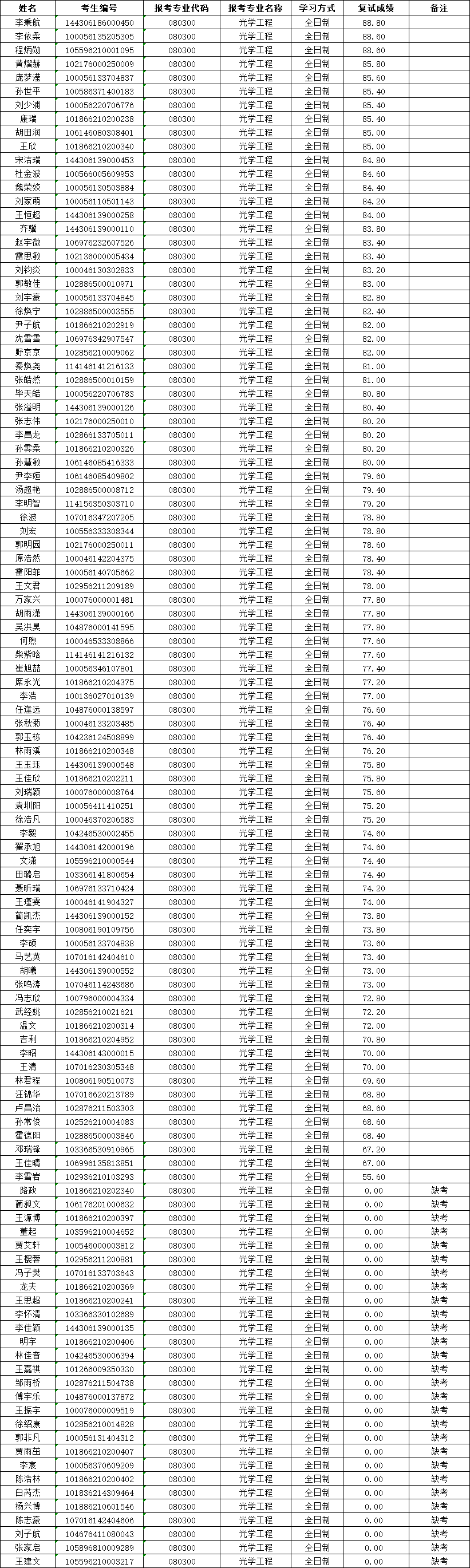 按照学校复试工作安排,我院光学工程专业于2026年4月9日进行了硕士研究生复试工作。现对该专业考生复试成绩予以公布。