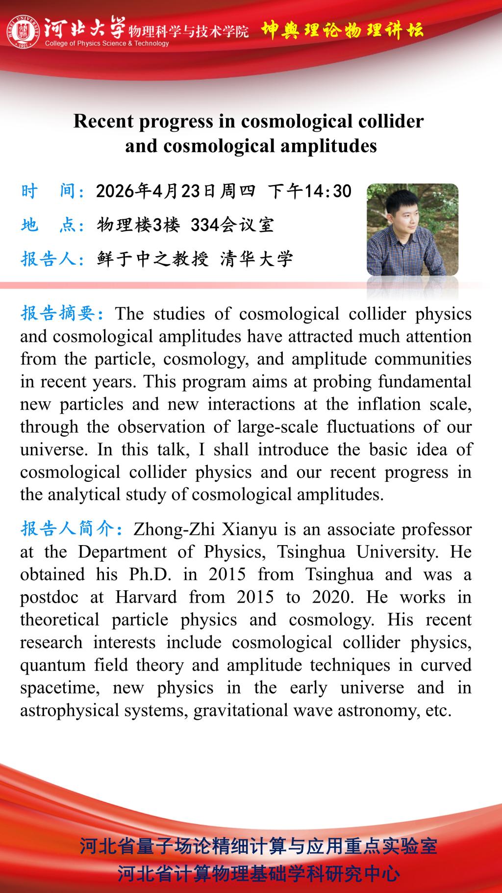 学术预告:Recent progress in cosmological collider and cosmological amplitudes